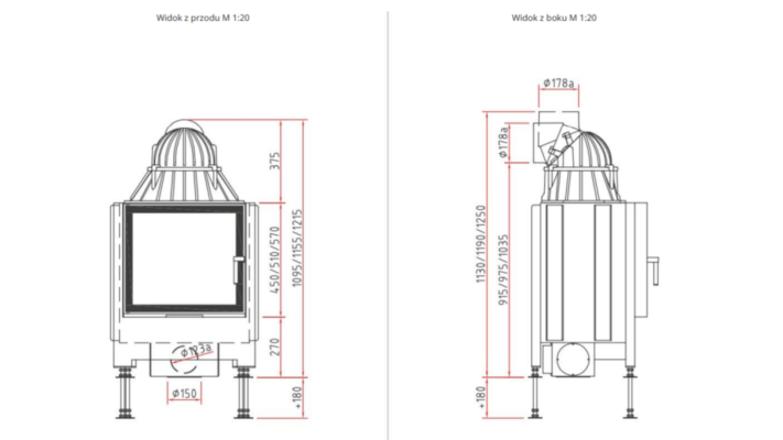 • Wersja tunelowa – umożliwia widok płomieni z obu stron