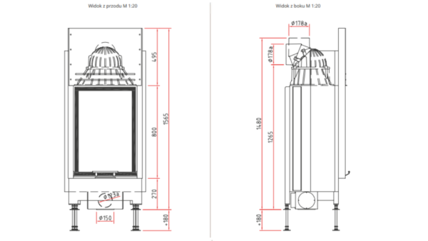 - Średnica wylotu spalin: Ø 180 mm