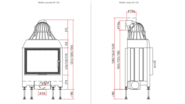 - Regulowany dolny spryskiwacz szyby – zapewnia lepszy widok płomieni