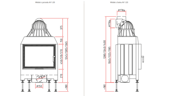 - Regulowany dolny spryskiwacz szyby – zapewnia lepszy widok płomieni