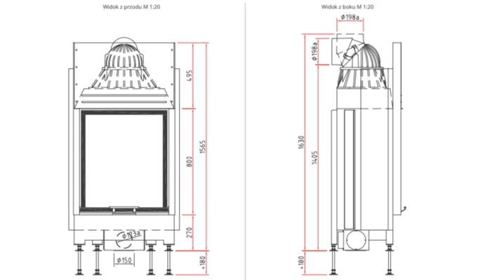 - Średnica wylotu spalin: Ø 200 mm