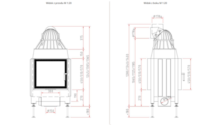 - Wersja tunelowa – możliwość obserwacji płomieni z obu stron