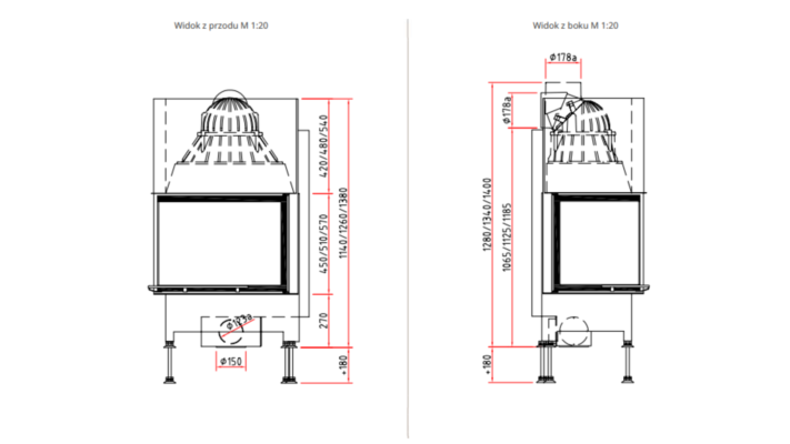 - Średnica wylotu spalin: Ø 180 mm