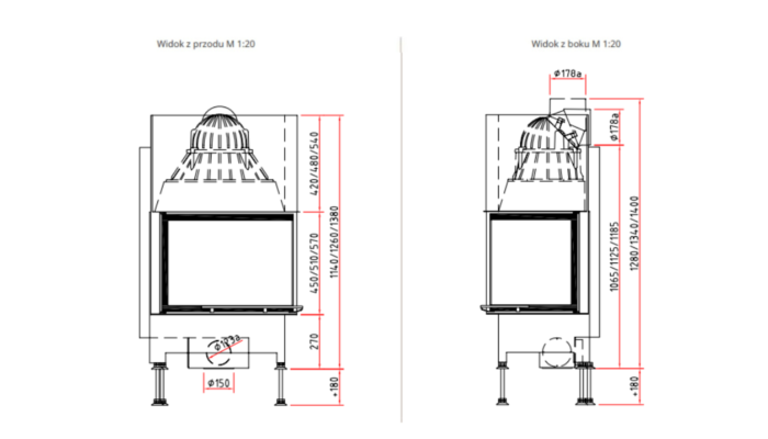 • Średnica wylotu spalin: Ø 180 mm