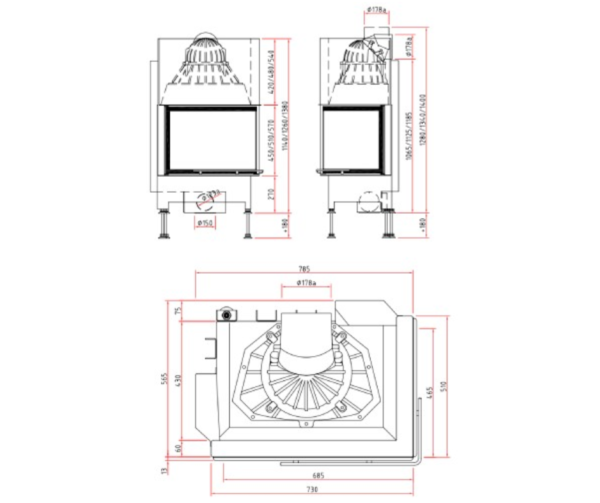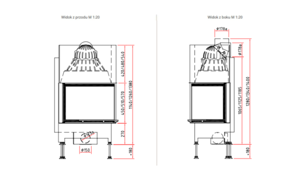 • Średnica wylotu spalin: Ø 180 mm