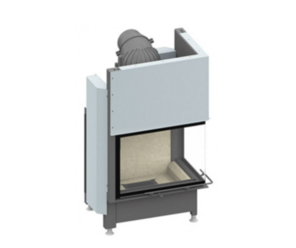 Wkład kominkowy Schmid Ekko R 67(45) h to nowoczesny kominek narożny z podnoszoną szybą na froncie. Wyposażony w standardową wykładzinę z gładkiej białej szamoty oraz opcjonalnie samodomykające się drzwi, zapewnia trwałość, estetykę i bezpieczeństwo.