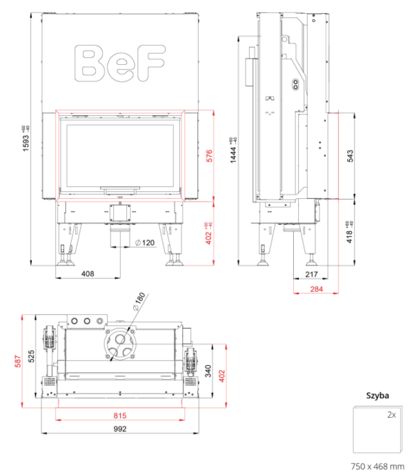 WKŁAD KOMINKOWY Z PŁASZCZEM WODNYM BEF AQUATIC WH V 80 GILOTYNA