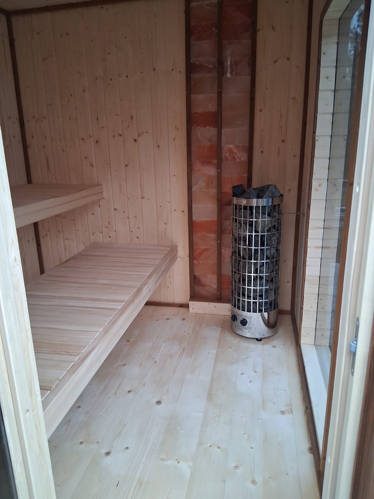 – Wymiary wewnętrzne sauny: 205x205cm
